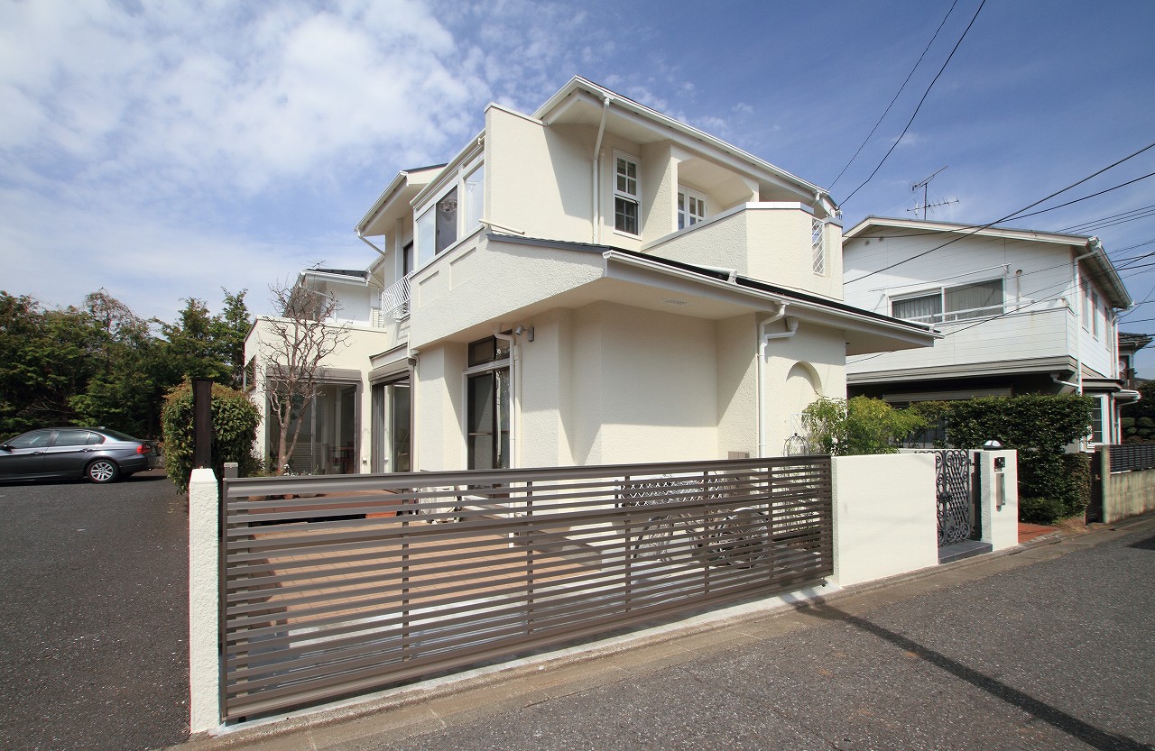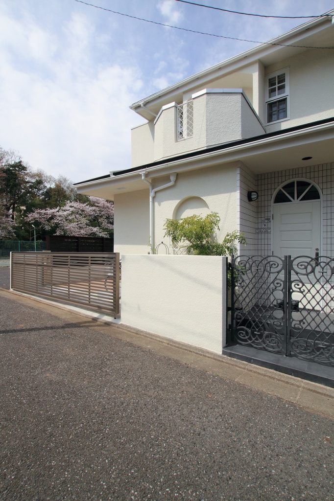 築30年の住宅の外壁に合わせた塗装を塀に施すことで、エクステリアに一体感をもたらしました。塀は単なる境界を示すものではなく、エクステリアのデザイン要素としての役割も果たします。新しい塗装は、住宅の外観にボリューム感と洗練された雰囲気を加えます。