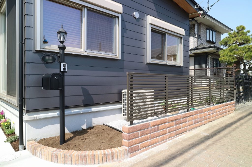 お手持ちのレンガを活用した点も注目です。カーポートの目地に使用されたこれらのレンガは、エクステリアのアクセントとなり、全体の雰囲気を引き締めています。リサイクル素材を利用することは、環境に優しく、個性的な外構を作り出す方法の一つです。