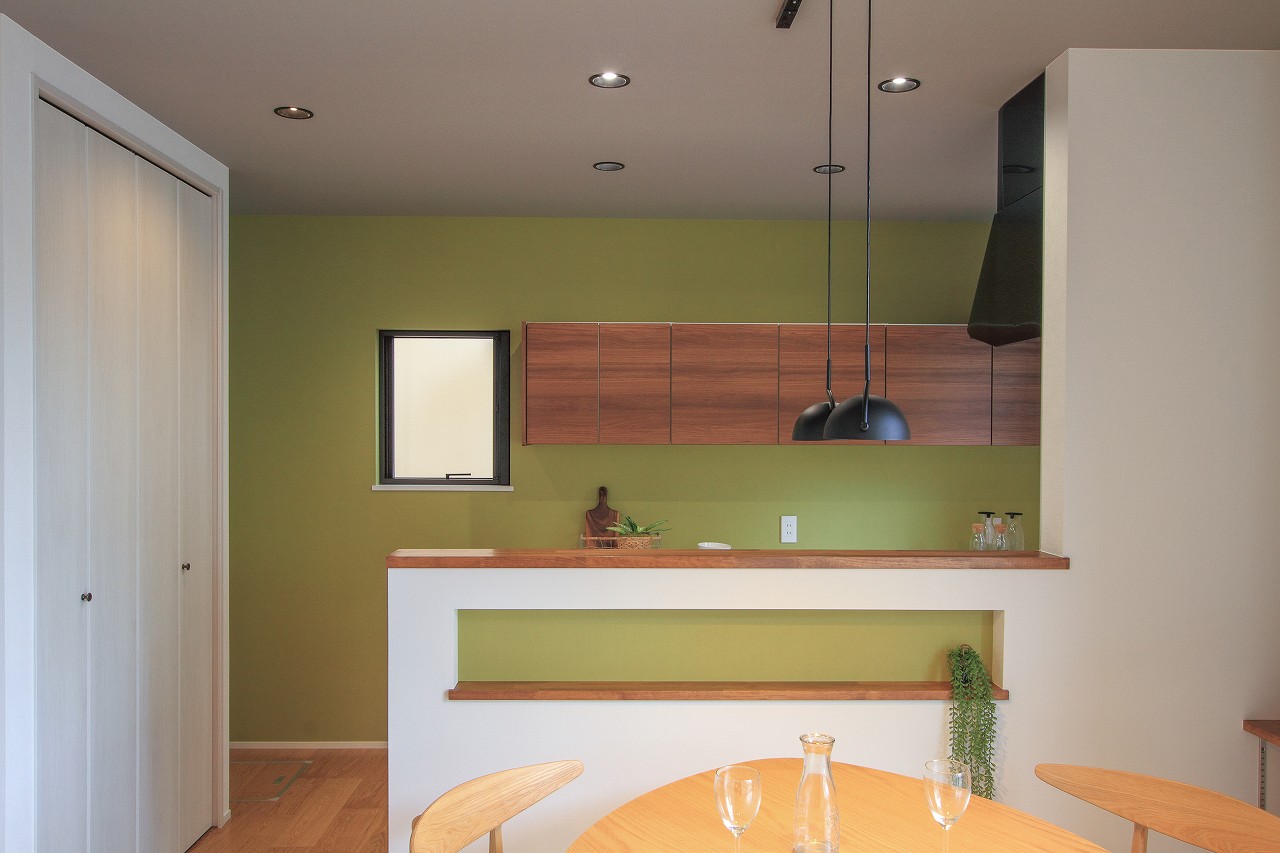 デザイン面では、壁にモスグリーンのアクセントクロスを取り入れ、洗練されたBar風のインテリアを実現しました。このリノベーションにより、家全体がモダンかつ洗練された雰囲気に生まれ変わりました。