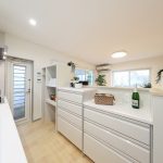 特にキッチンは、家電収納を含む造作カウンター収納で使い勝手と見た目を両立。見せる収納と隠す収納を上手く使い分けることで、スッキリとした印象に仕上がりました。