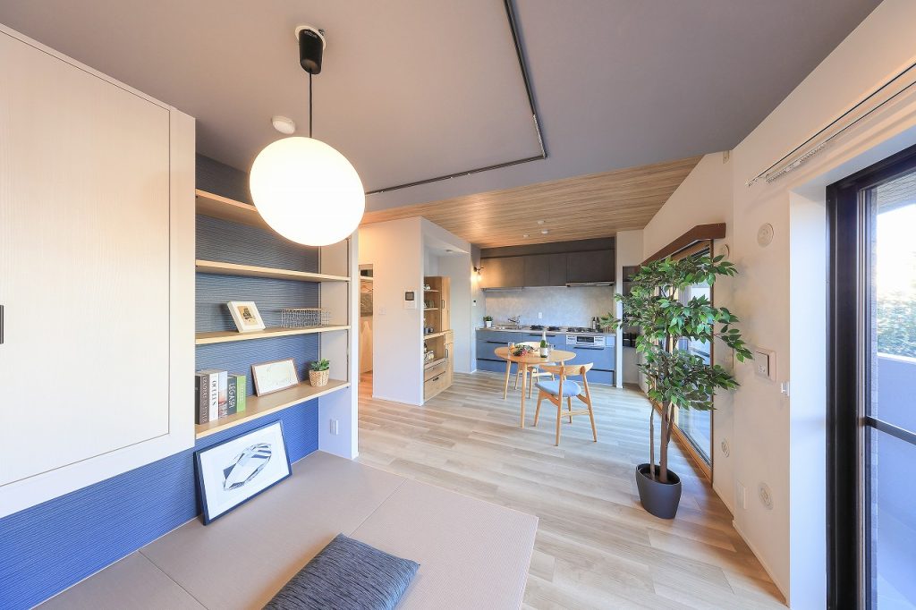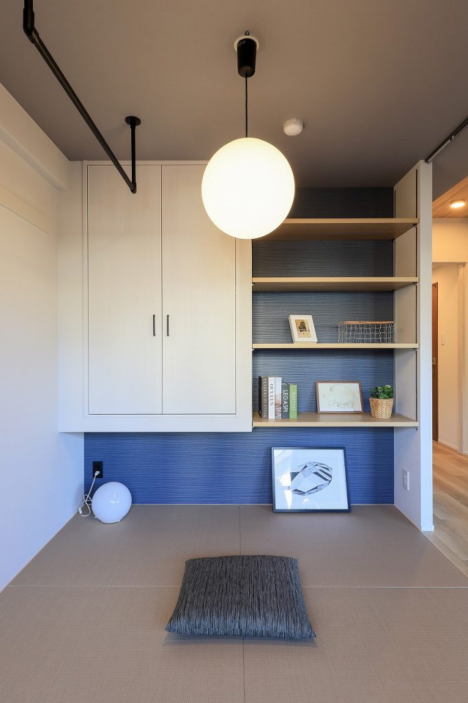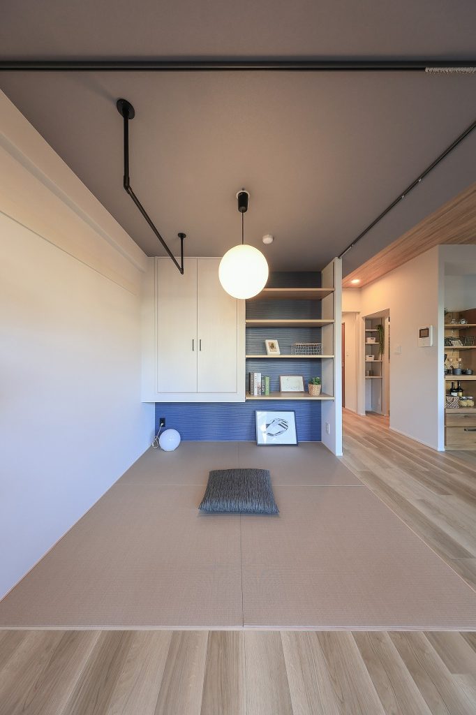 リビングに隣接していた6畳の和室は、完全な個室ではなく、LDKと一体で使える畳コーナーとして取り込みました。