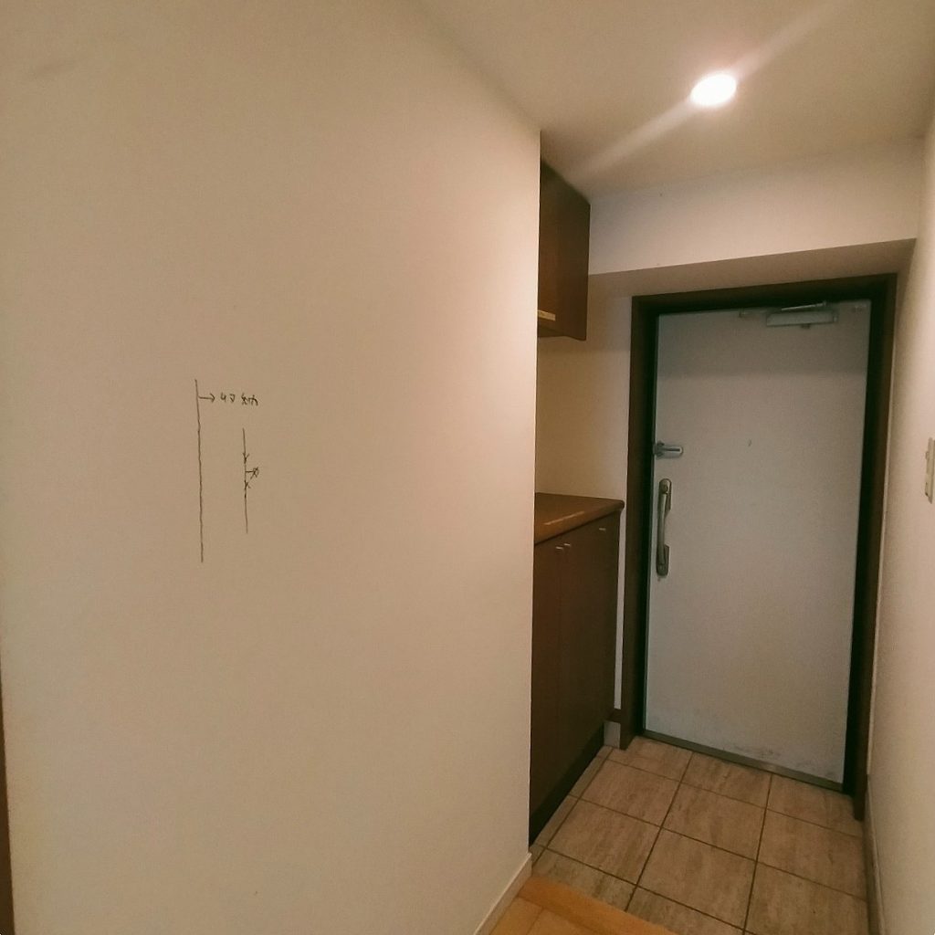 壁には下地を入れているため、将来的にDIYでフックなどを取り付け、バッグや帽子などを収納できるようにしています。