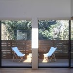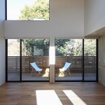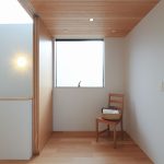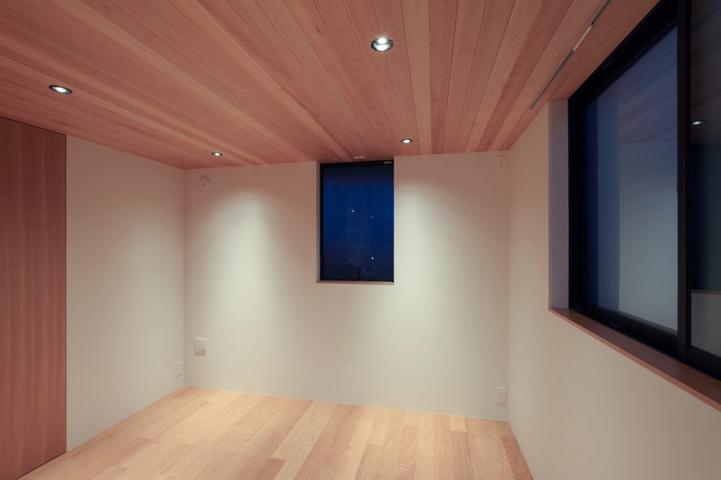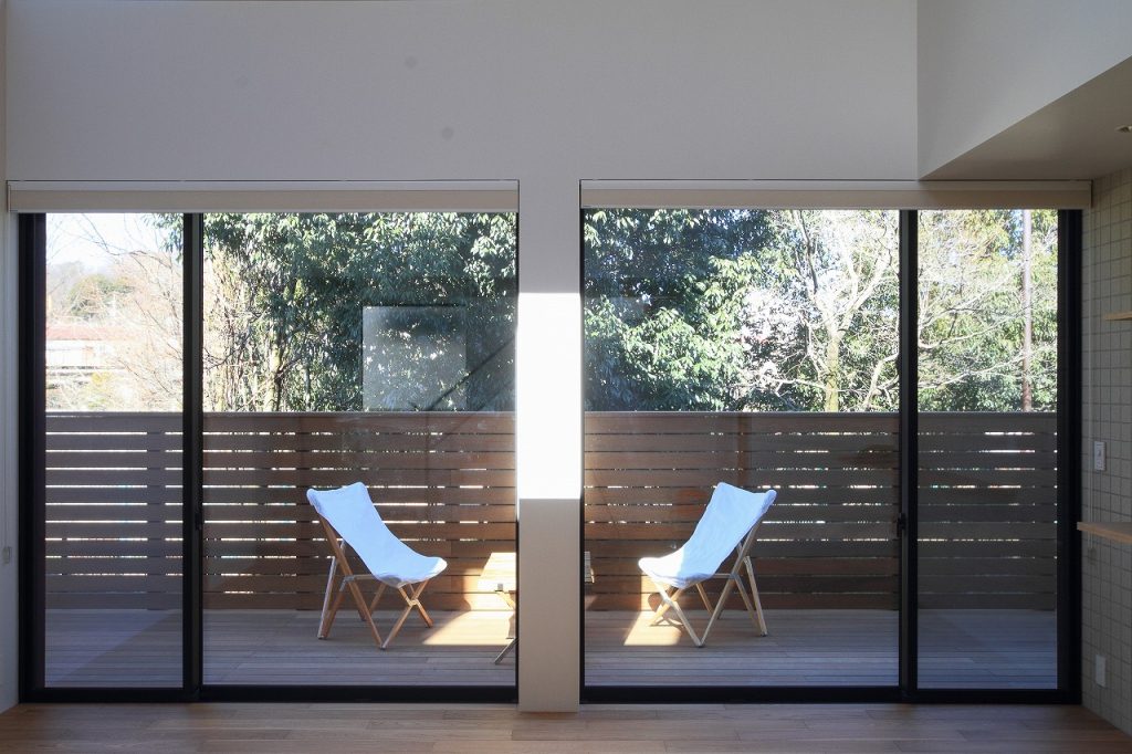 南側には、隣接する建物が建つことを想定した設計がなされています。プライバシーを保ちながらも光を取り入れるために、高い位置に大きな窓が設置されました。この窓からは、南側の光が効果的に室内に導かれ、明るい居住空間が確保されます。また、窓の配置により、隣家の視線を遮りながらも、外の景色を楽しむことができるよう配慮されています。