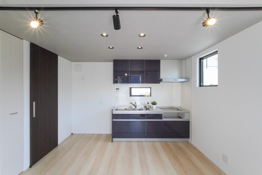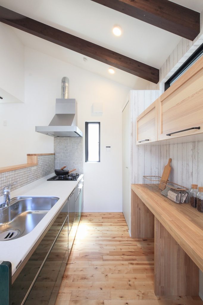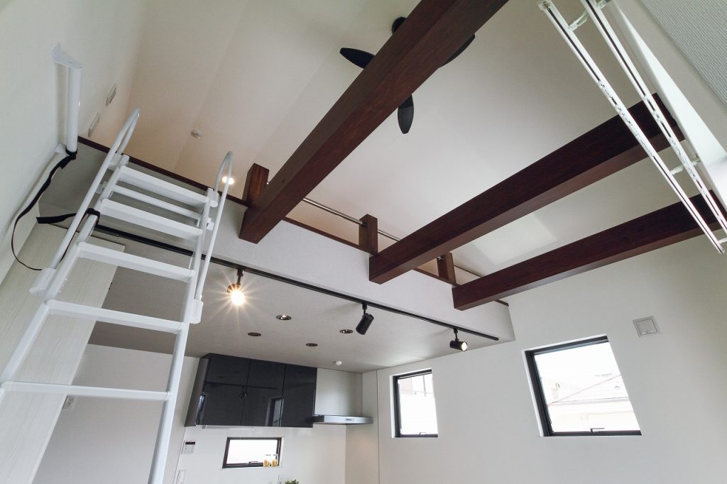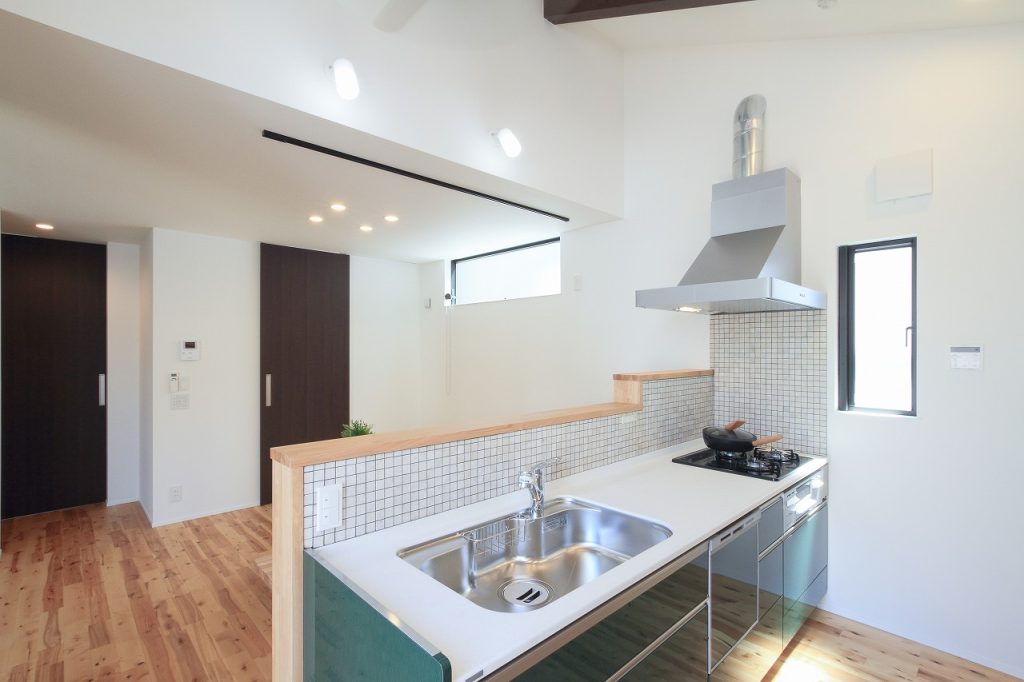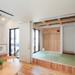 この新築注文住宅の設計において、特に注目すべき点は、1階のキッチン天井を吹き抜けにすることで、空間に開放感を持たせたことです。この吹き抜けは、LDKの広がりを一層強調し、家族が集う空間をより快適で広々としたものにしました。また、LDKに隣接する小上がりのタタミコーナーは、和の要素を取り入れつつ、現代的なライフスタイルにもマッチする設計となっています。畳の下をすべて収納スペースとして活用することで、収納力も大幅に向上しています。
