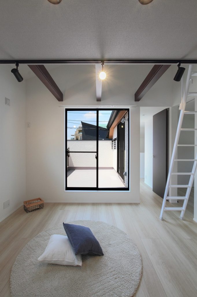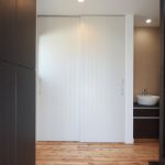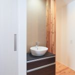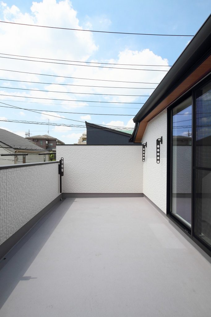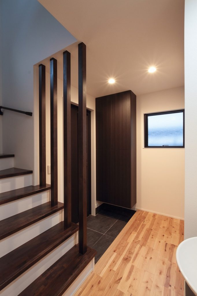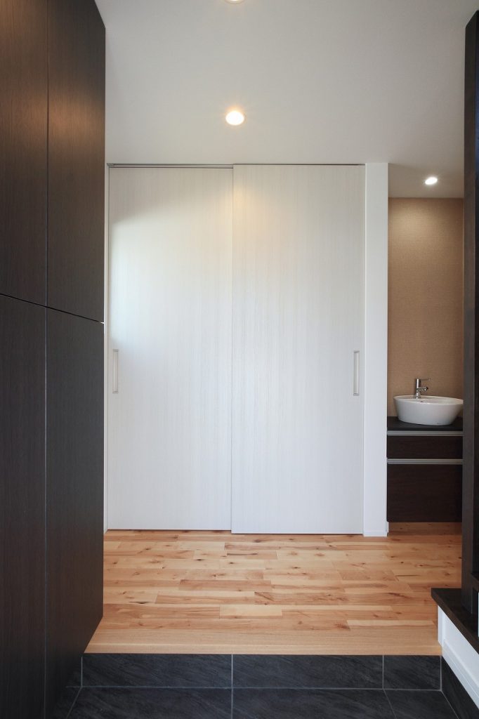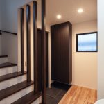 外壁のデザインにも注目が集まります。ご主人様の提案により、外壁の貼り分けを行い、和モダンなテイストを強調した仕上がりになりました。この外観は、注文住宅ならではの個性的な魅力を放ち、住宅街の景観に新たな彩りを加えています。また、この家は2世帯住宅として設計されており、世代を超えた家族の絆を深める空間となっています。