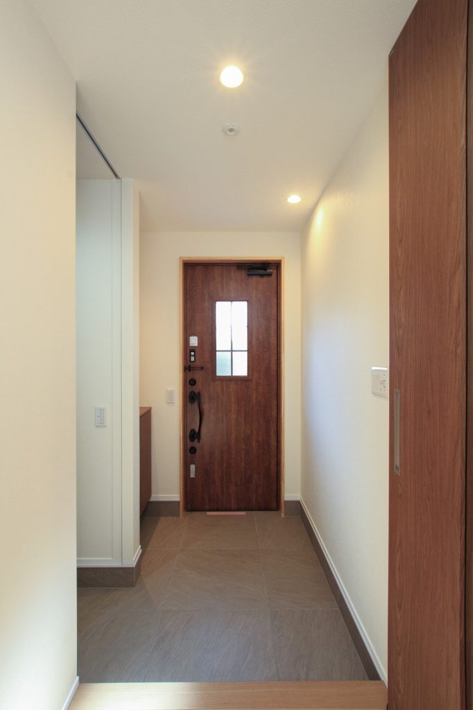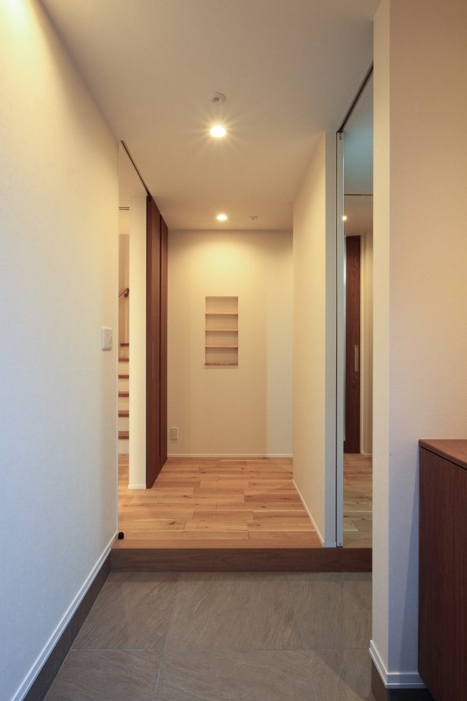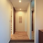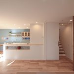 リビング階段は、見た目の美しさだけでなく、空調の効率という課題も考慮されています。多くの注文住宅では、階段周辺の空調効率が課題となることがありますが、N様の住宅では、階段の前に天井までの高いハイドア(引き戸)を設置することで、この問題を解決しました。これにより、1階と2階の温度差を効果的にコントロールできるようになっています。