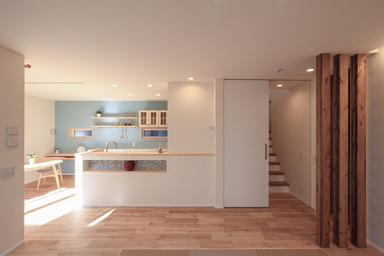 建材や水廻りの設備、クロスやタイルに至るまで、N様はひとつひとつ丁寧に選ばれました。その結果、ナチュラルで温かみのあるインテリアが実現し、家全体に温もりと落ち着きをもたらしています。この新築注文住宅は、注文住宅ならではの細部へのこだわりと、居住者の快適性を最優先に考えた設計の見本のような存在です。