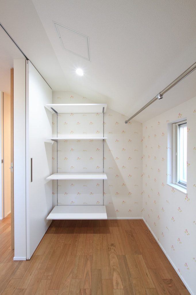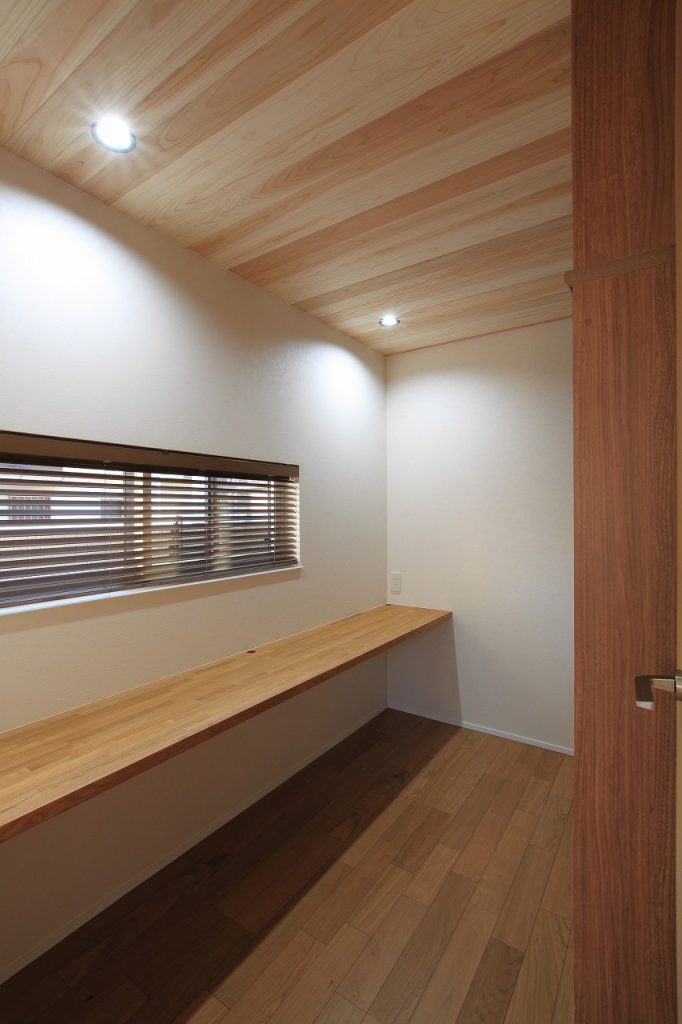 2階には、3部屋と書斎、さらに納戸が設けられており、収納スペースは十分に確保されています。これにより、家族それぞれのプライバシーが守られ、また多目的に利用可能な空間が生まれました。