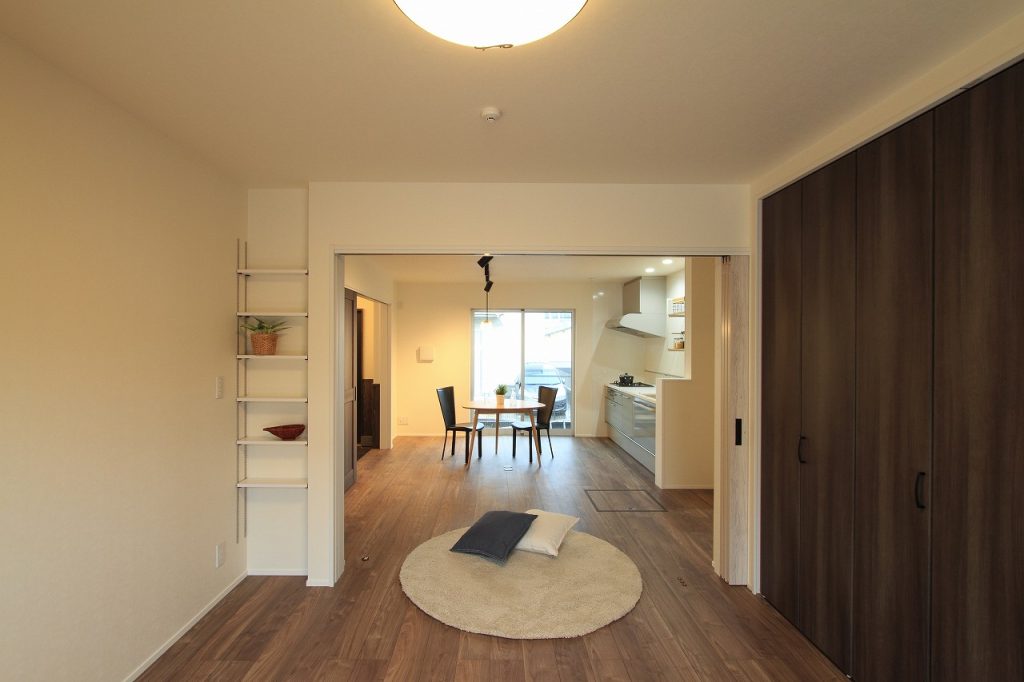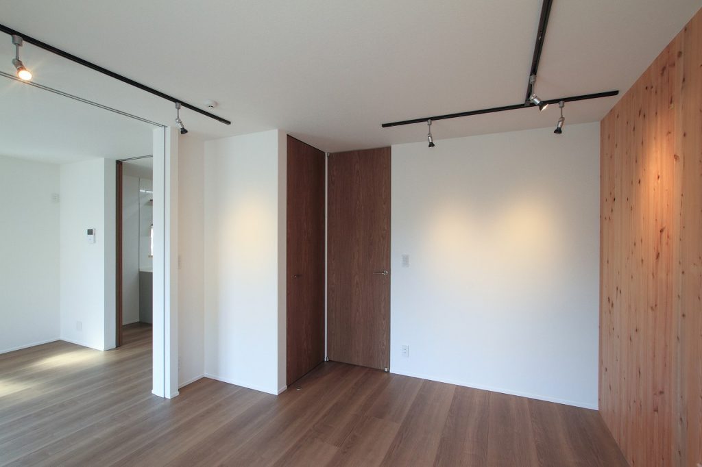 弟様の西側の世帯では、趣味である自転車が大きな役割を果たしています。自転車を壁に掛けるための特別な杉板が設置され、それがインテリアのアクセントとなっています。これは、注文住宅が持つ個性を表現する素晴らしい例です。このような個人の趣味や好みを反映させることは、注文住宅の最大の利点の一つです。