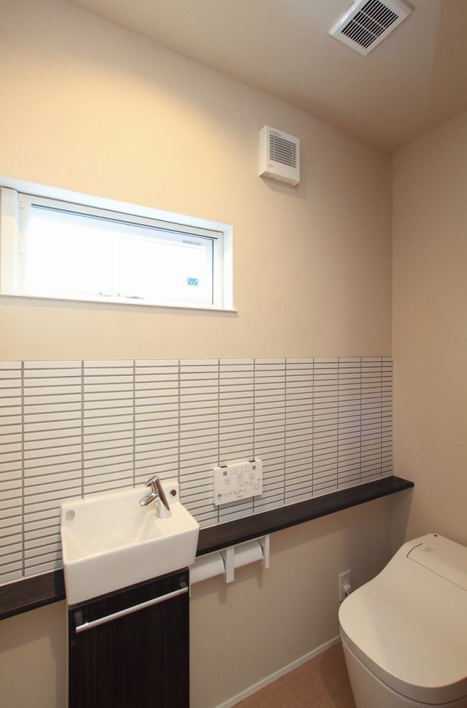 新築注文住宅のもう一つの特徴は、全室の壁と天井に珪藻土を塗っている点です。珪藻土は湿度調整や消臭効果があり、室内の空気環境を改善する効果が期待できます。特に、日本の湿度の高い季節において、このような自然素材の使用は大変有効です。