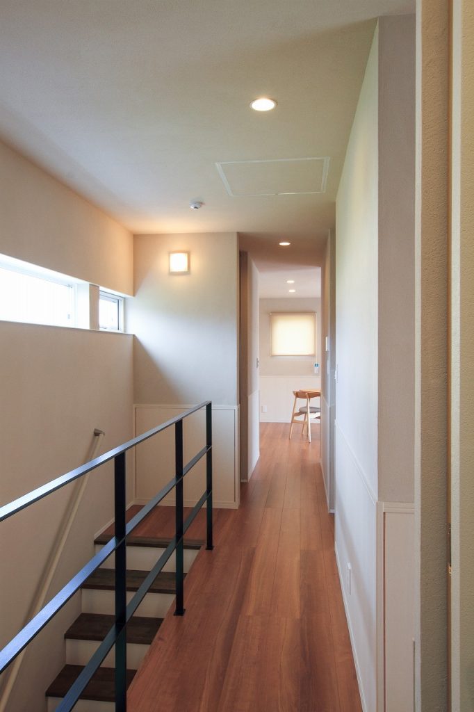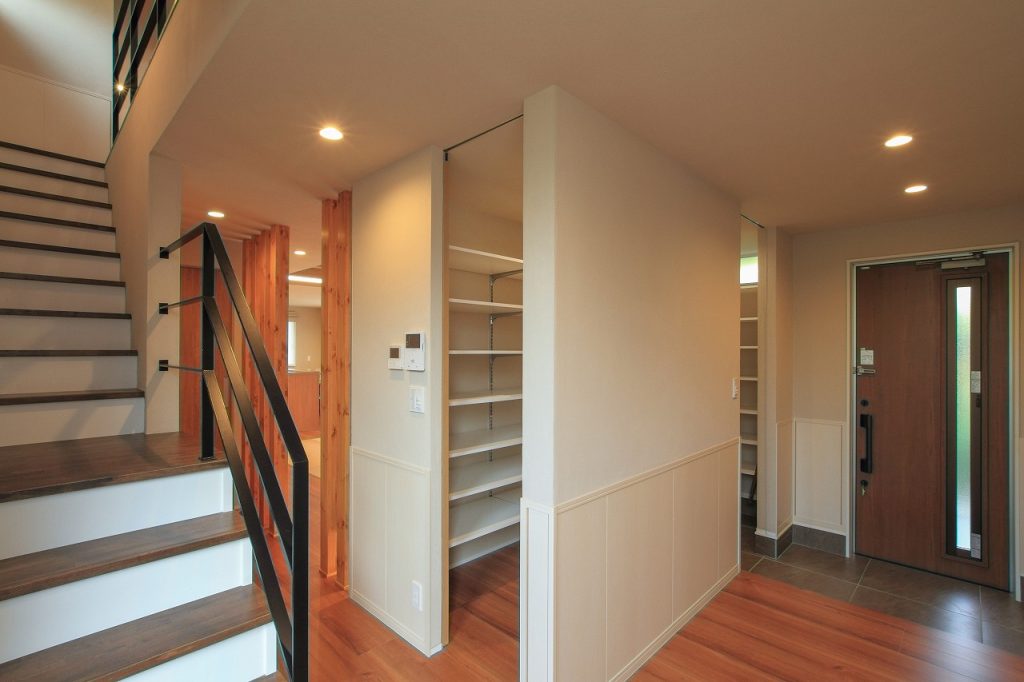 まず、内装について特筆すべき点は、ペットとの生活を考慮した仕上げです。ペットが快適に過ごせるよう、清潔感を保ちやすい素材を選び、また、家具や壁に爪痕がつきにくい工夫がされています。さらに、家族全員が健やかに暮らすため、全館空調を採用し、快適な室温を保持できるようにしました。また、エコフレンドリーな新築注文住宅として、太陽光パネルを設置し、オール電化での運用を実現しています。これにより、環境への配慮とランニングコストの削減の両方を達成しています。