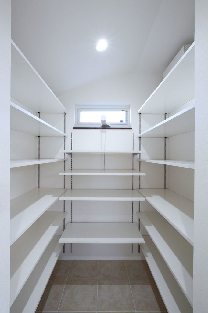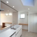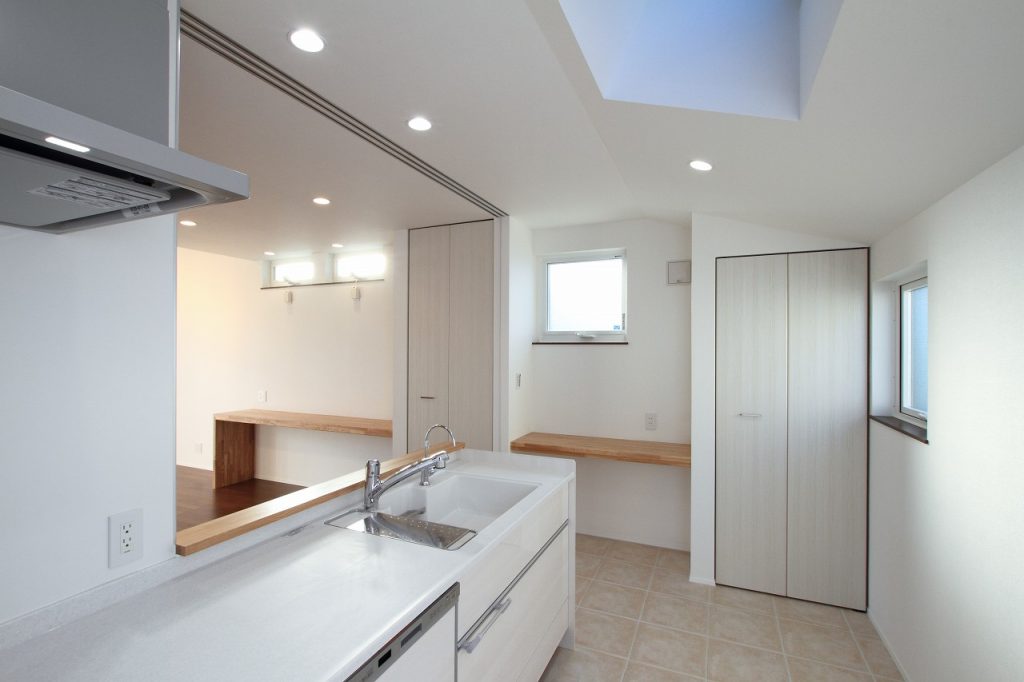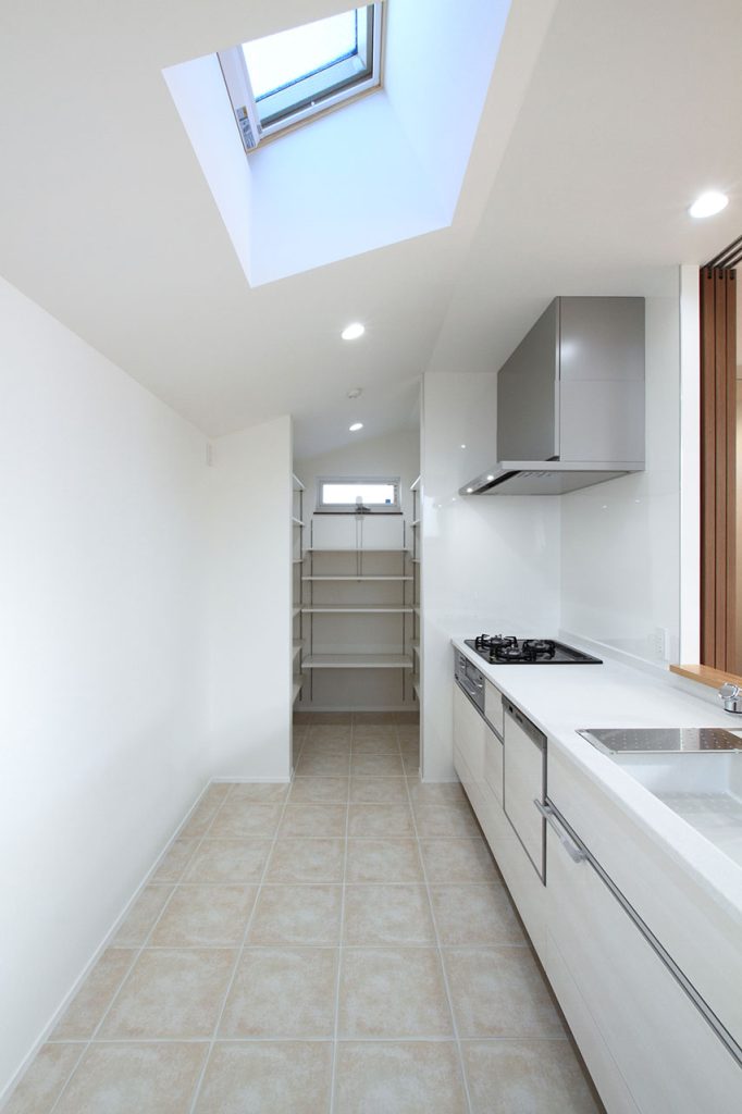 キッチンには、収納を多く配置することに注力しました。特にパントリーの追加は、キッチンの使い勝手を大きく向上させるものです。さらに、天窓を設けることで、北側に位置していても暗くならないよう配慮されています。この明るさは、料理をする際の快適さを大幅に向上させます。