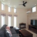 床暖房・エアコン・カーテン・防火サッシ・外壁塗り壁・制震ダンパー・スチール階段・造作家具・床タイル貼り
